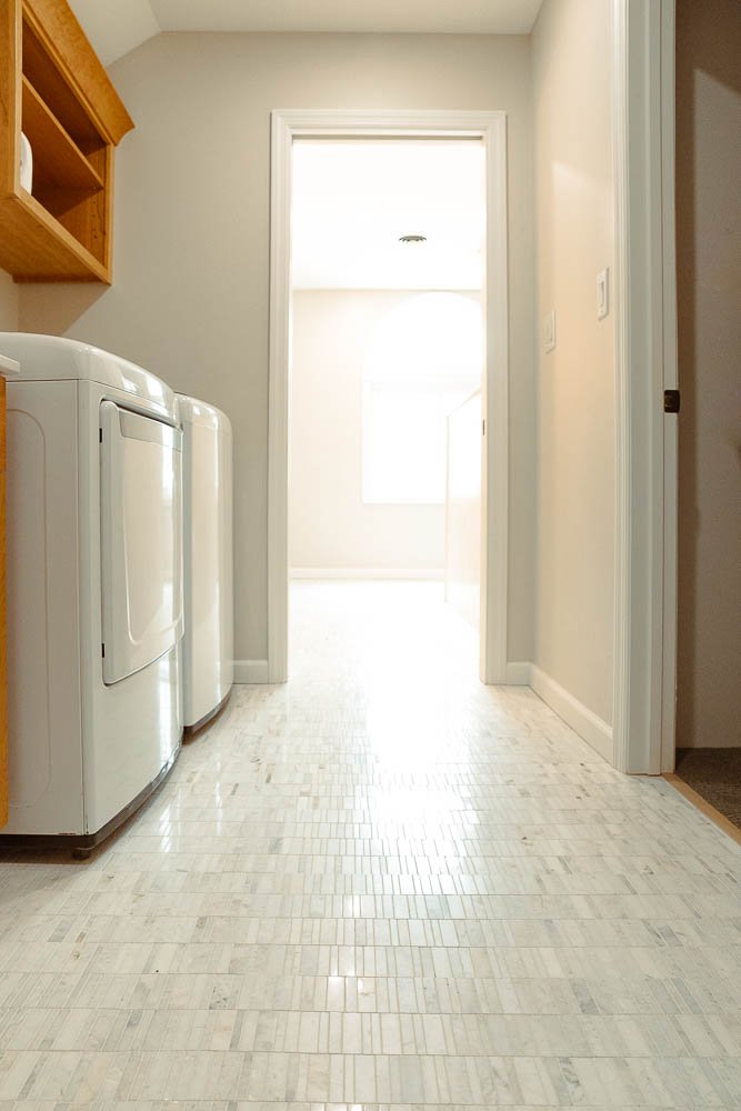 The homeowners wanted a timeless bathroom with modern functionality—a space that felt bright, spa-like, and luxurious while still practical for everyday living. They also needed better storage, an upstairs laundry, and a mudroom that could actually handle sports gear, backpacks, and daily life.
